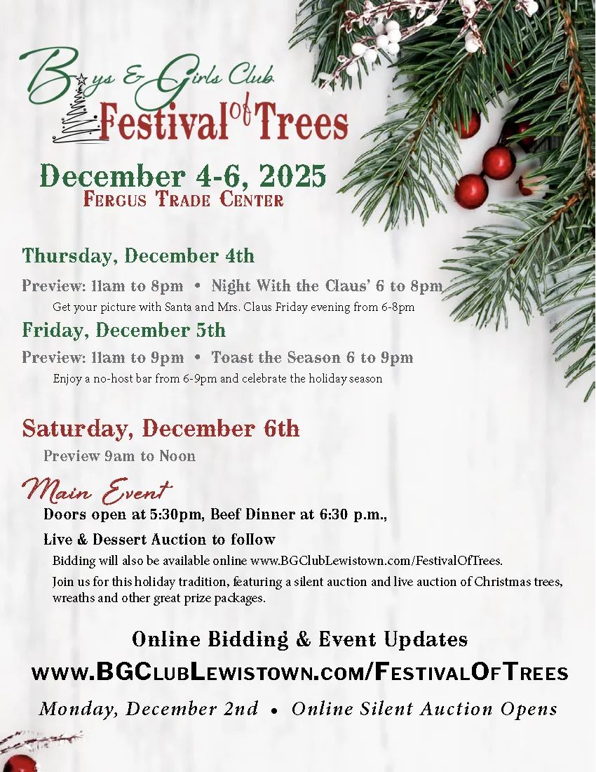 The largest event and fundraiser for the Boys & Girls Club. This event is held the first weekend of December each year and has become a tradition for so many. There is a dinner, live and silent auction items, family events to meet the Claus' and live music for all. Great way to start the Holiday Season.