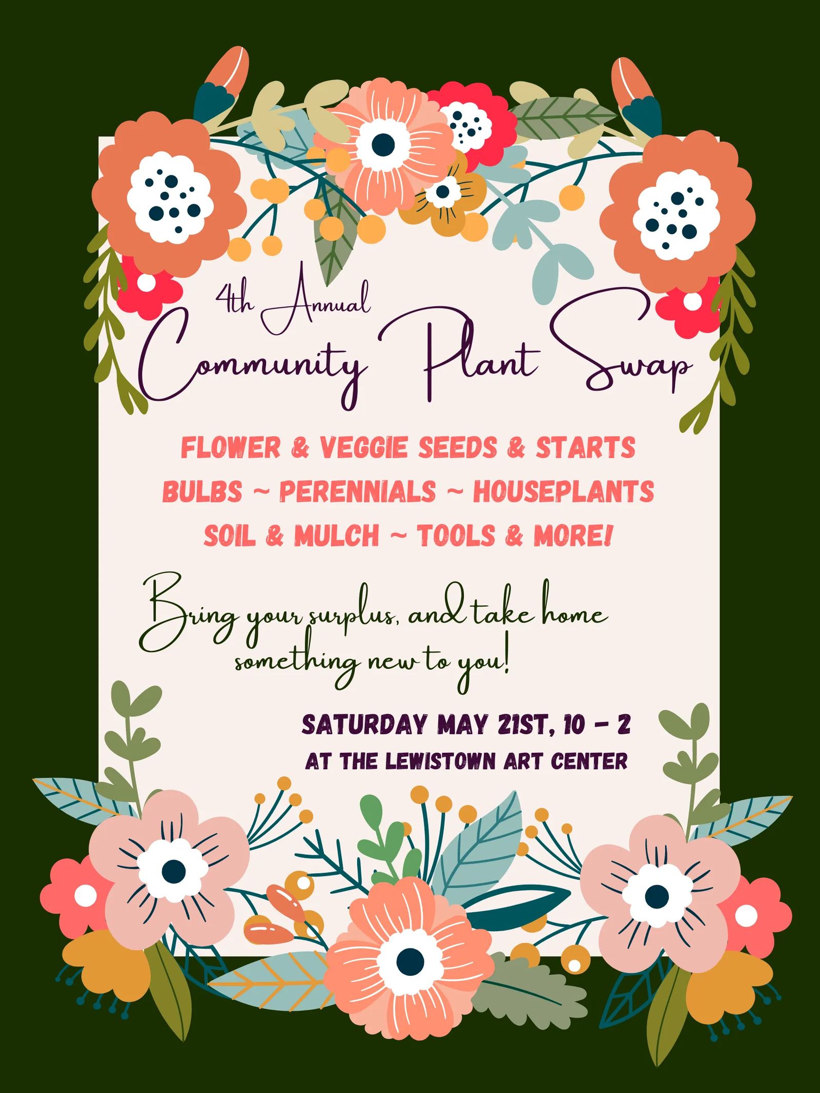 Did you start too many tomato plants? Have seeds left over from last year? Want to trade some houseplant cuttings for a clump of irises? Join us at the Art Center for the 4th Annual FREE Community Plant Swap! Get your green thumbs ready for the garden season, enjoy some refreshments, and browse the Sales Gallery for a special something while you're here!