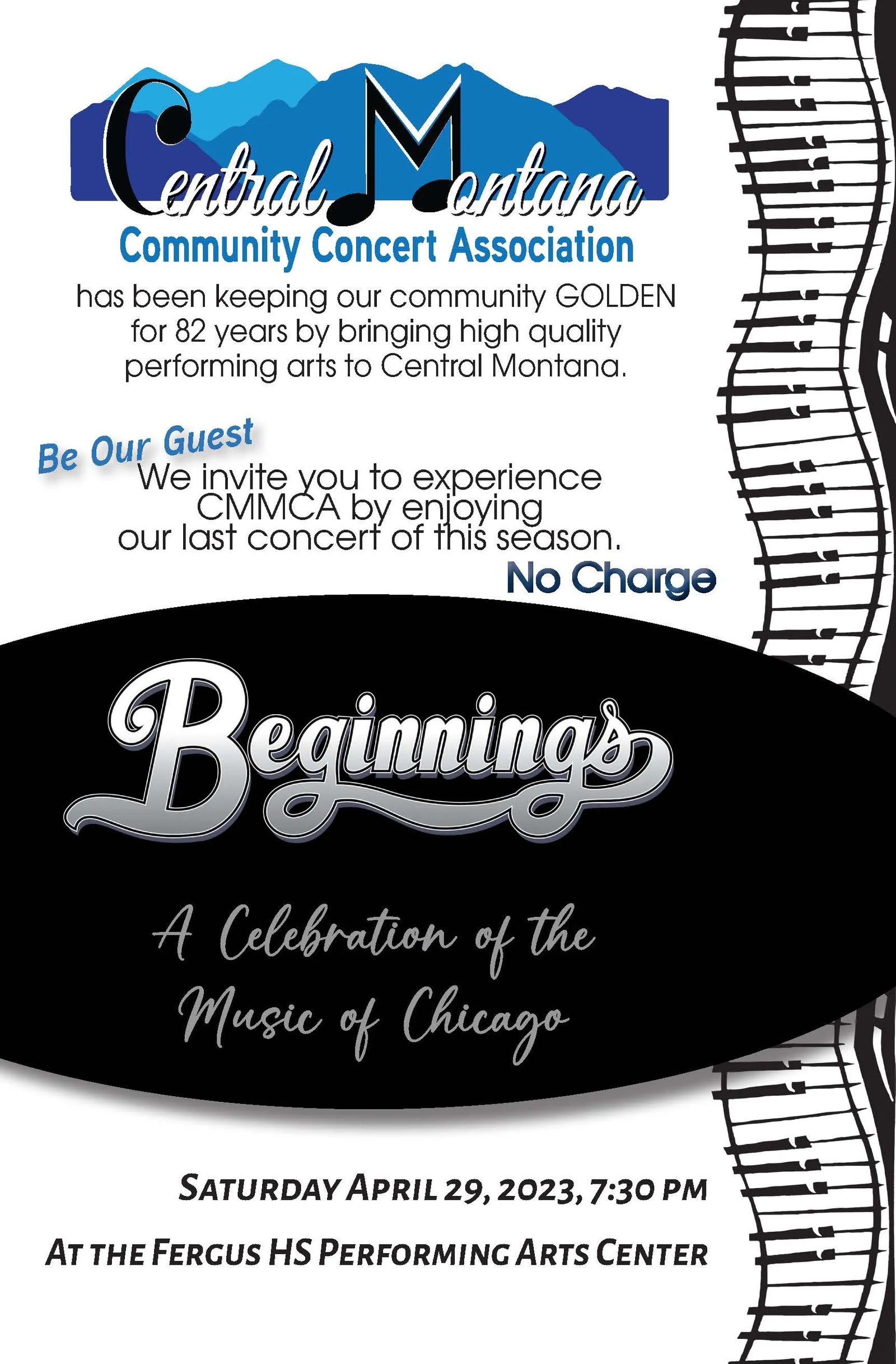 Central Montana Community Concert Association has been keeping our community GOLDEN for 82 years by bringing high quality performing arts to Central Montana.