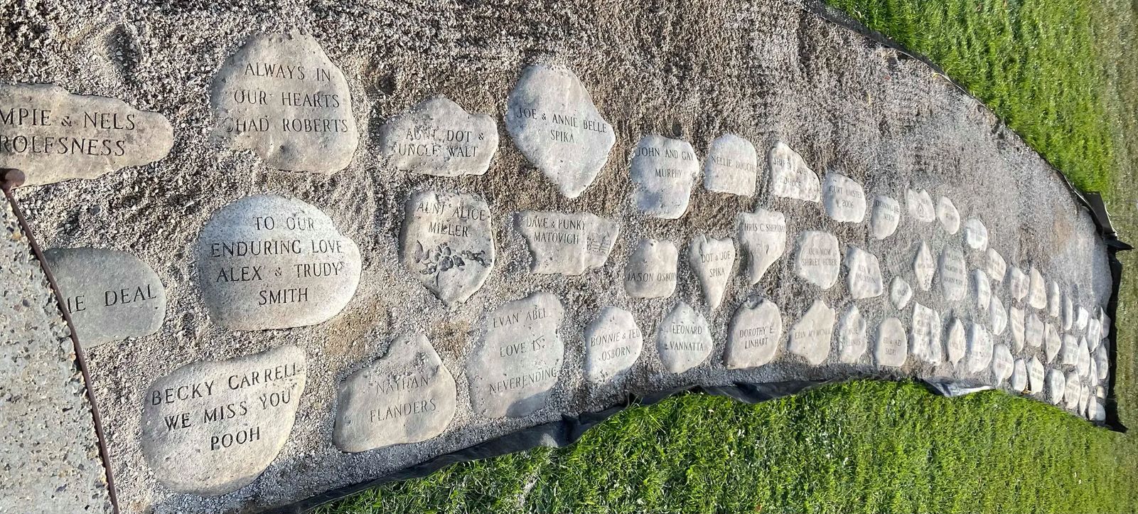 All you need to bring is a kneeling pad, trowel, & gloves. The stones will be laid out for you to place into the concrete fines.