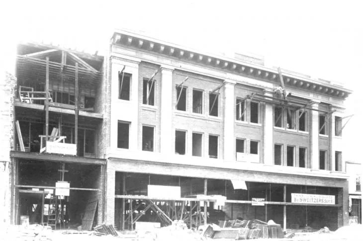 The Plymouth, an exclusive women’s store, was located on street level. Dr. Theo J. Brice maintained his offices on the second floor, and two apartments occupied the third floor.
