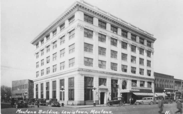 The Montana Building was conceived by a corporation of local businessmen in expectation of the continued growth of the community. George J. Wiedeman organized the Montana Hardware Company in 1892, with John Power, President, and A.W. Warr, Vice President and Secretary. The list of stockholders included Thomas Power and Mrs. N.M. Erickson. The Lewistown Commercial Company was organized in 1898 with L.W. Eldridge, President, A.W. Stoddard, Secretary and Treasurer, and Richard A. Hanke, Manager and Vice President. The success of this pioneer business venture is reflected in the Montana Building, designed by J.G. Link and C.S. Haire. The exuberant Neoclassical and Beaux-Arts building exhibits perhaps the most significant terra cotta façade in the state.