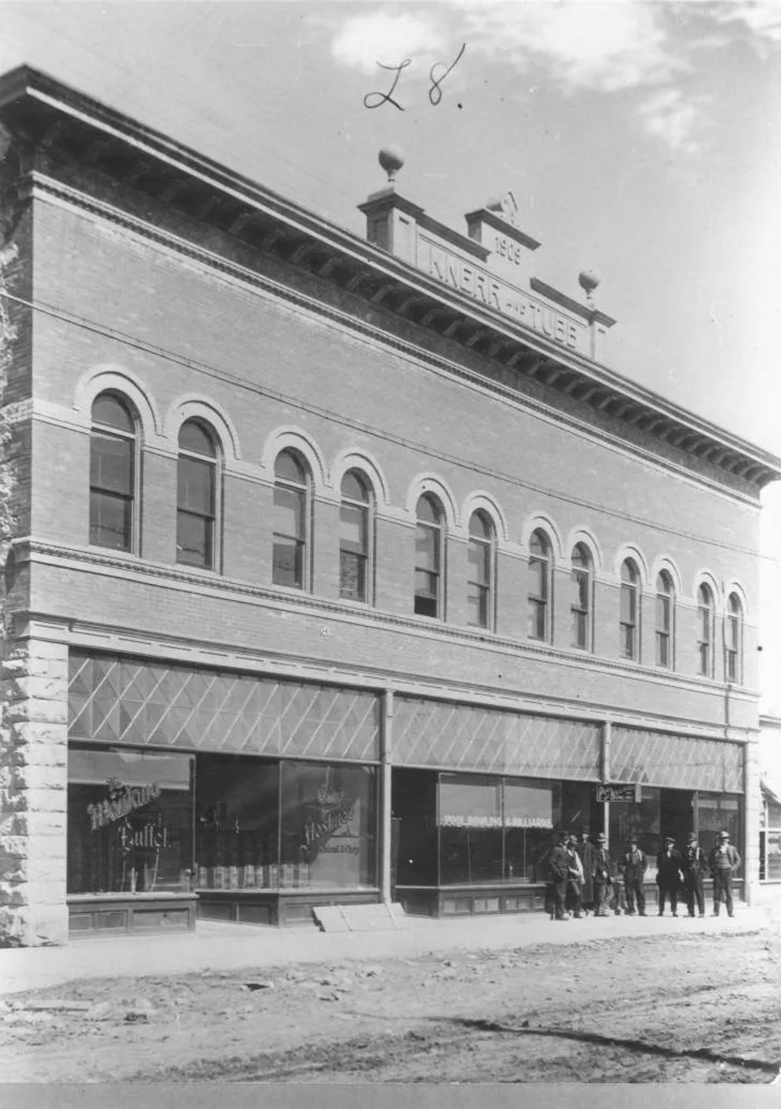 The Knerr-Tubb Block was constructed in 1909 of uncoursed rubblestone with a brick façade, a technique that was replacing the masonry tradition that utilized hand cut and shaped stone. The building is remembered by many as Armory Hall, where for years it hosted grand balls and weekly dances. Downstairs the Montana Buffet offered food and drinks while Spring and Eldred provided pool, billiards, and “other amusements.”