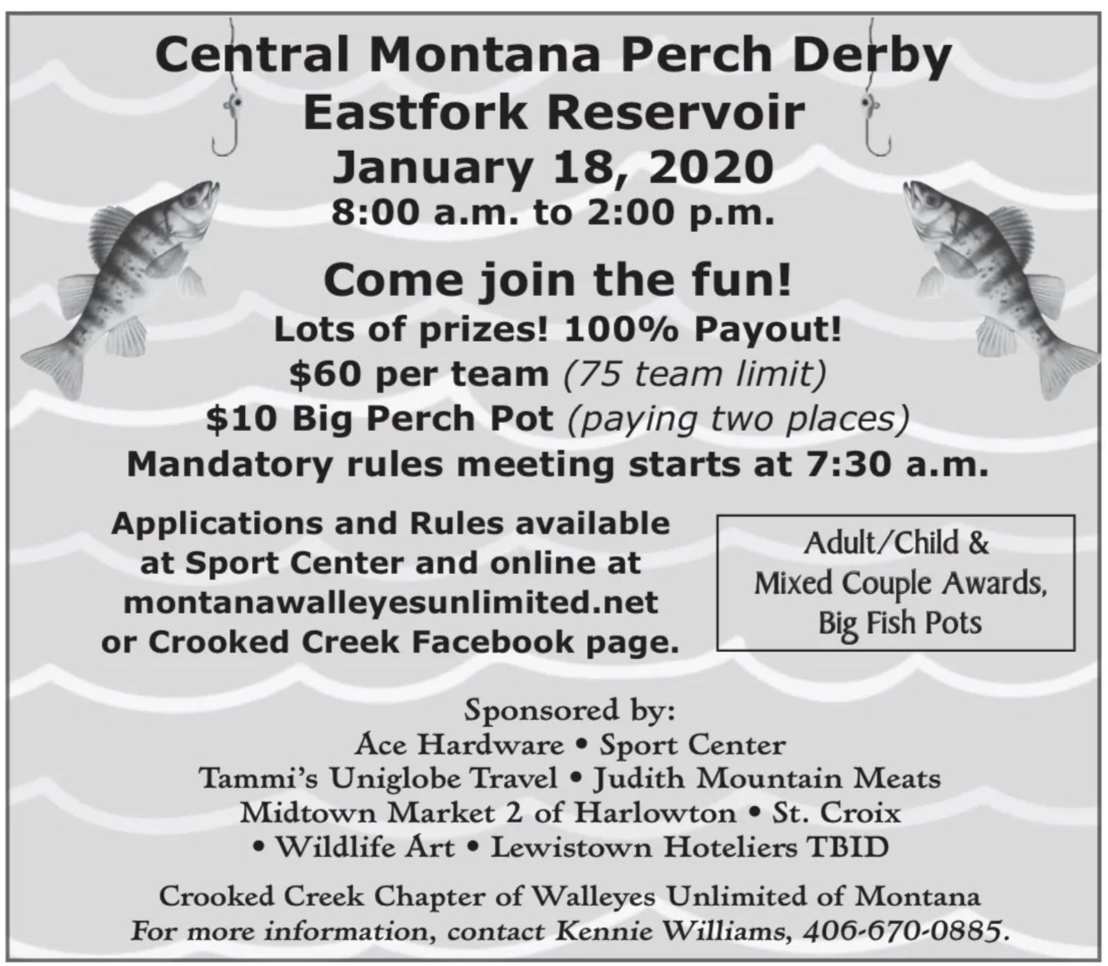 Applications and rules available at Sports Center and online at montanawalleyesunlimited.net or Crooked Creek Facebook page.