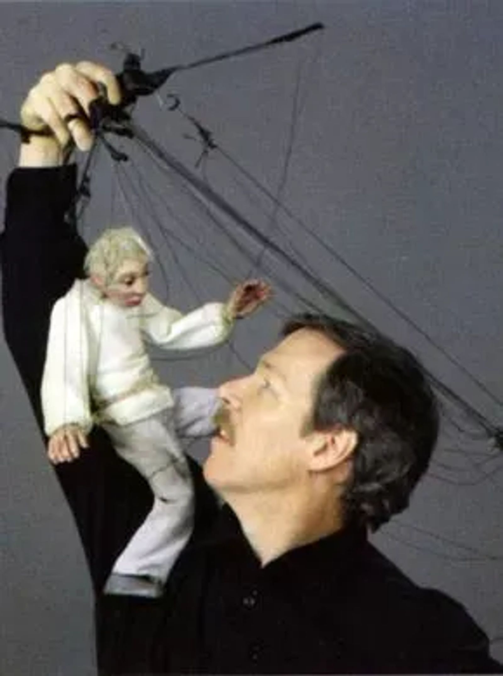 What is a marionette? It is a puppet controlled from above by strings, not by a hand inside the puppet. In the U.S. puppet shows are often considered to be exclusively for children, whereas throughout the rest of the world puppet and marionette plays are classically performed for adult audiences. This Cashore Marionettes show is definitely for both: adults and children. The marionettes, their clothing, and all the props have been made entirely by Joseph Cashore. His wife Wilma is his assistant for his performances.