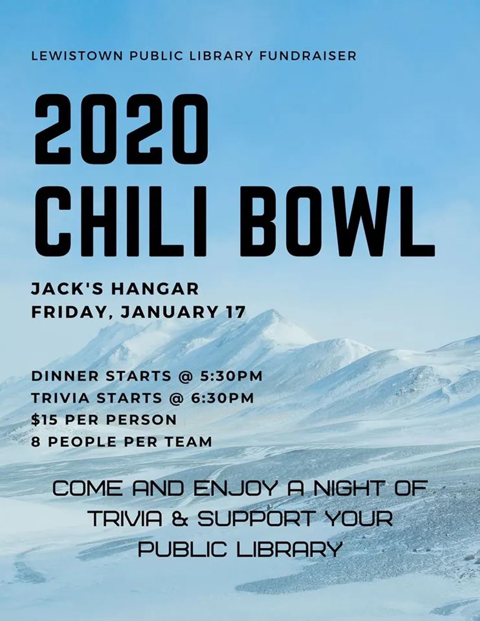 The Annual Chili Bowl/Trivia Night is Friday, January 17 - dinner begins at 5:30 p.m. and trivia kicks off at 6:30 p.m.
