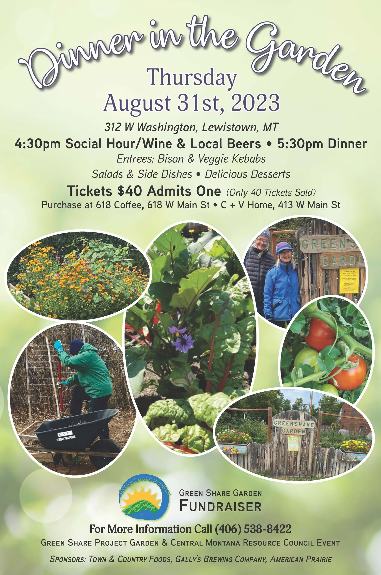 Dinner in the Garden - The Green Share Project Garden has an annual fund raiser dinner every summer to raise funds to help with the costs of running our non-profit, volunteer garden that provides fresh, local food for those in need in our community.