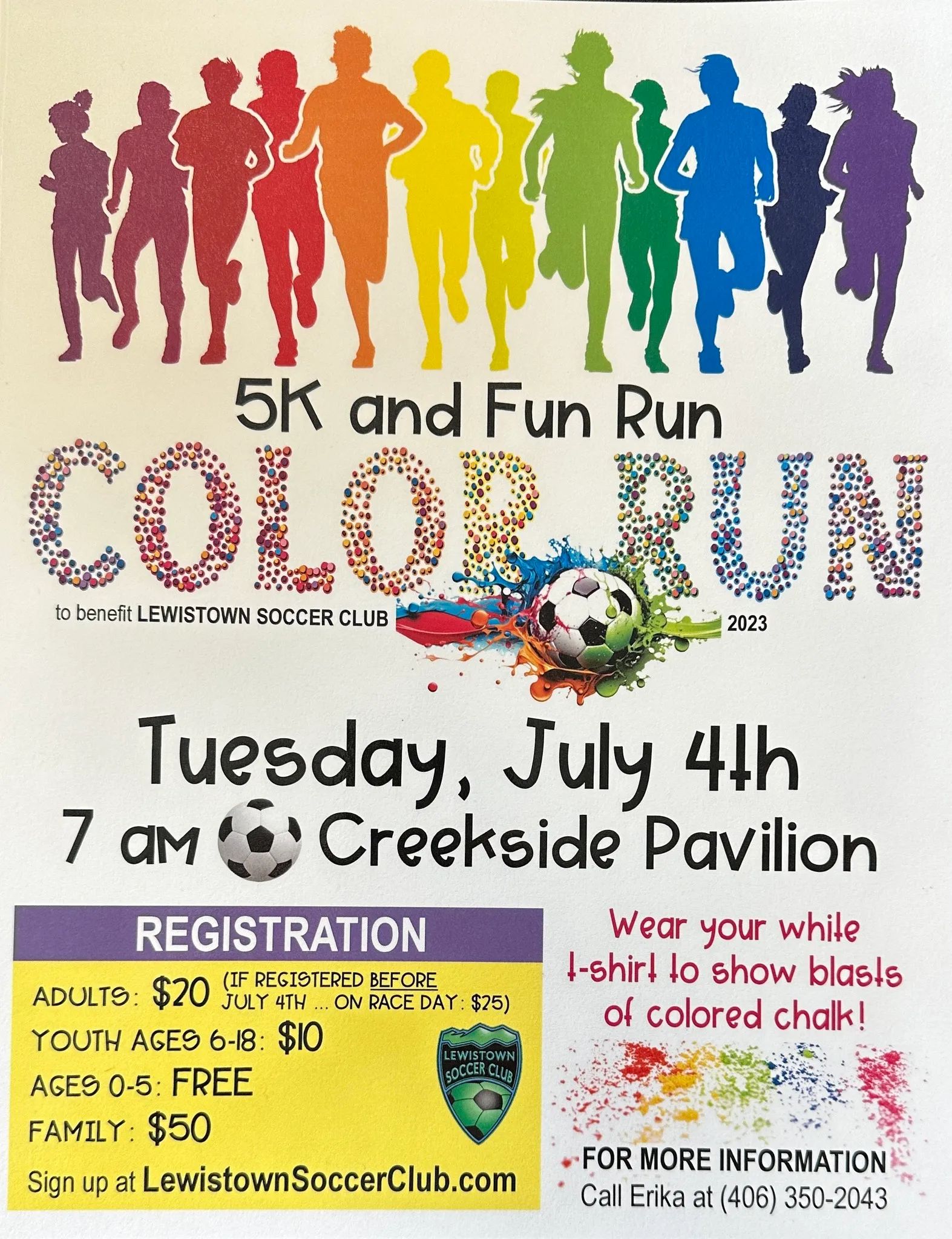 Mark your calendars for a 5K color run to benefit the Lewistown Soccer Club! Please share and invite your friends.