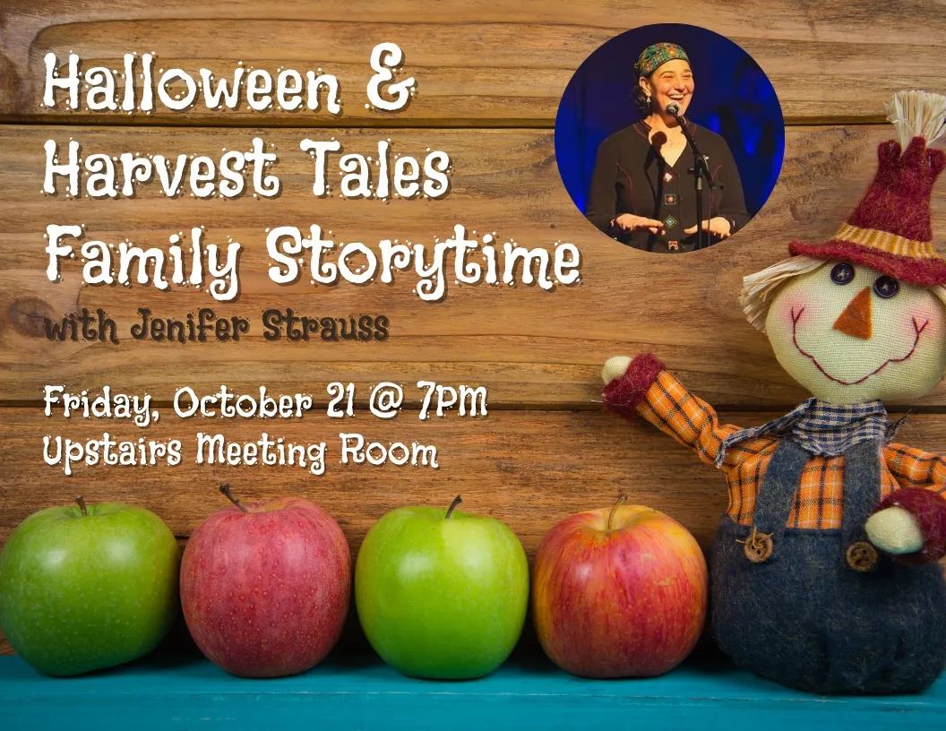 Professional storyteller Jenifer Strauss will perform fun fall tales and lead us in a craft project perfect for all ages on Friday, October 21 at 7PM in the Upstairs Meeting Room.