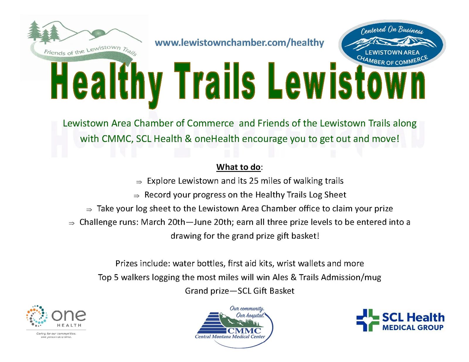 Lewistown Area Chamber of Commerce, Friends of the Lewistown Trails, CMMC, SCL Health and OneHealth are encouraging the community to get out and move! Use our fabulous trail system to earn prizes and get healthy this spring!