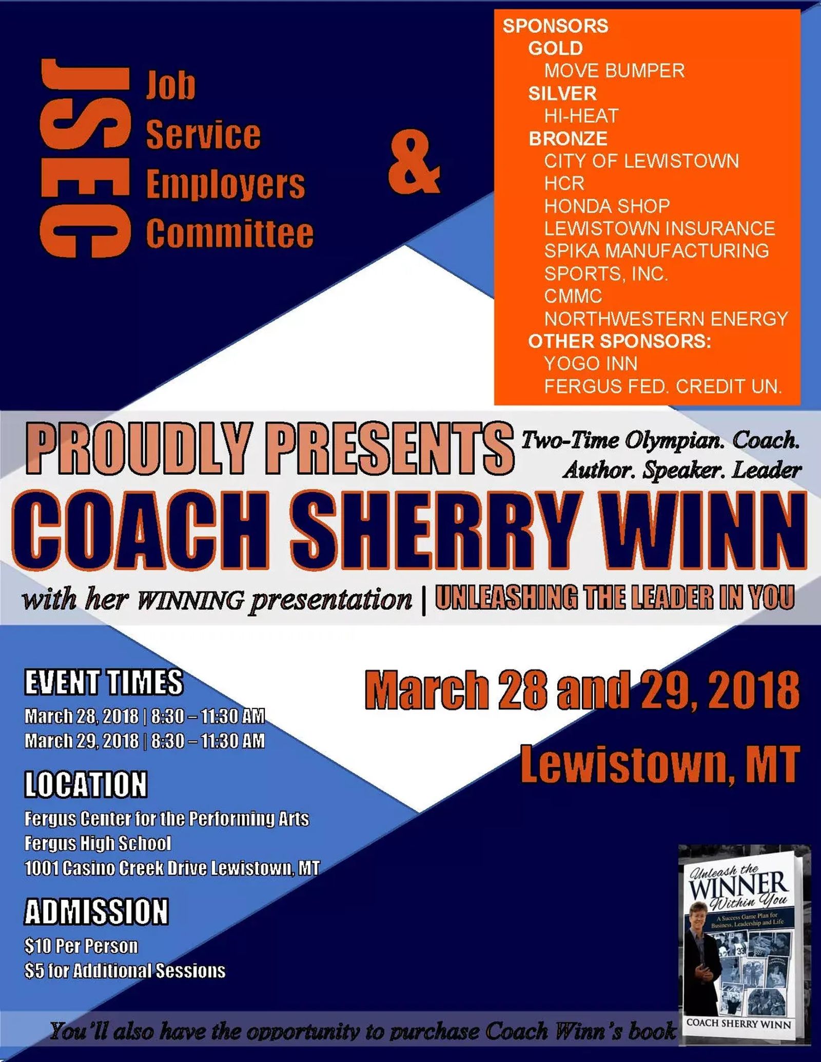Job Service Employers Committee proudly presents two-time olympian coach, author, speaker, leader, Coach Sherry Winn with her winning presentation, Unleashing the Leader in You.