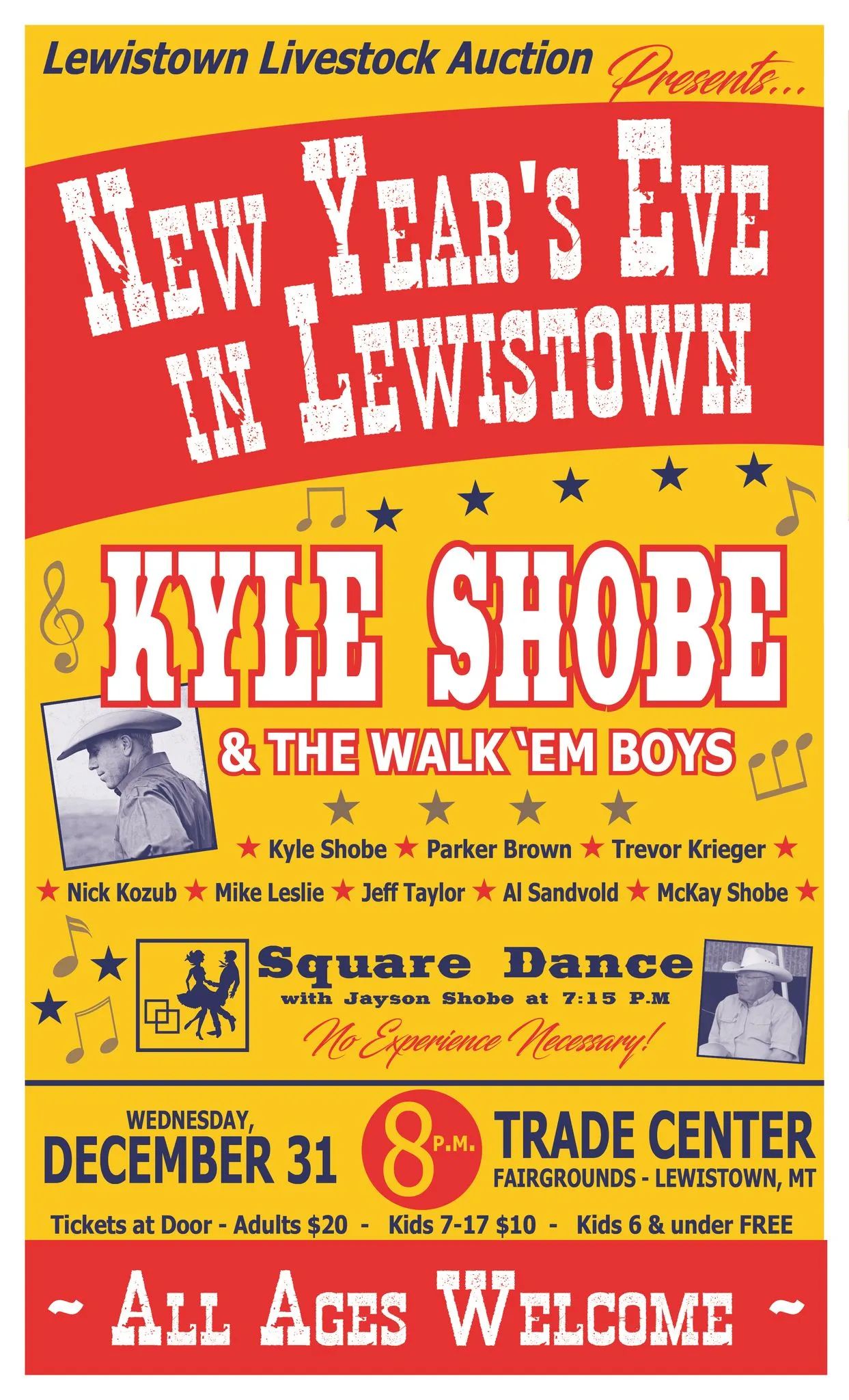New Year's Eve with Kyle Shobe & the Walk 'Em Boys, presented by Lewistown Livestock Auction.