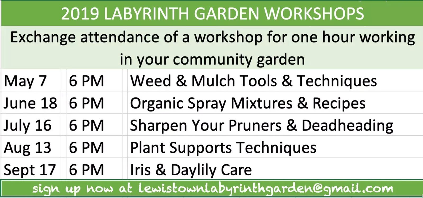 Sign up now at lewistownlabyrinthgarden@gmail.com.