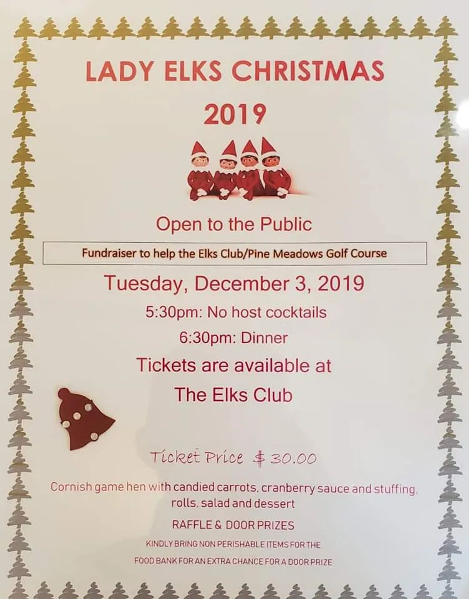 Fundraiser dinner for the Elks.