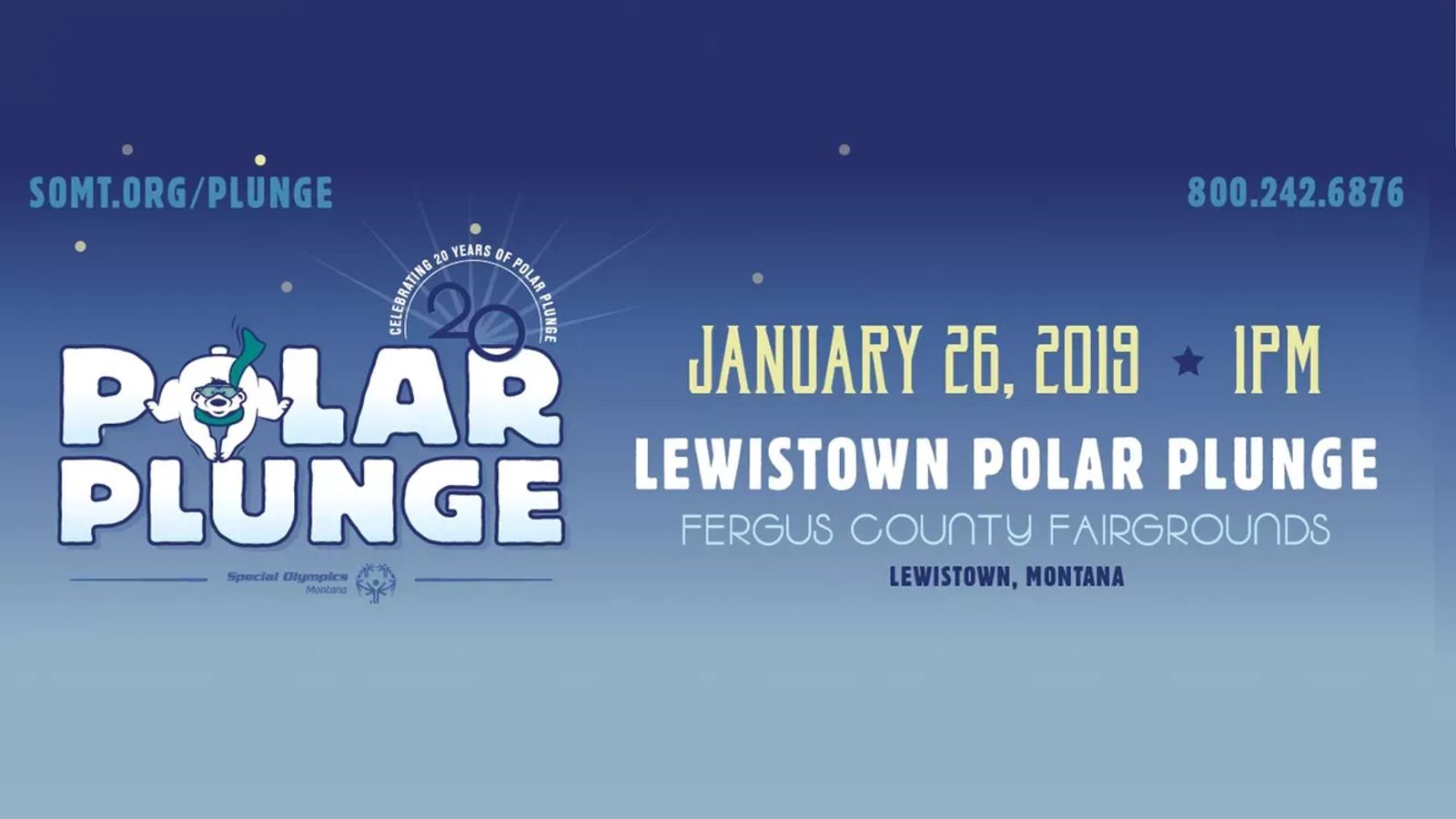 The Lewistown Polar Plunge is an exciting event that takes place in conjunction with the Fergus County Winter Fair so that plungers and spectators can enjoy all the festivities of the day! The theme of this year's plunge is, "Our Athletes Are Out Of This World", so dress in your best outer space outfit and come and plunge!