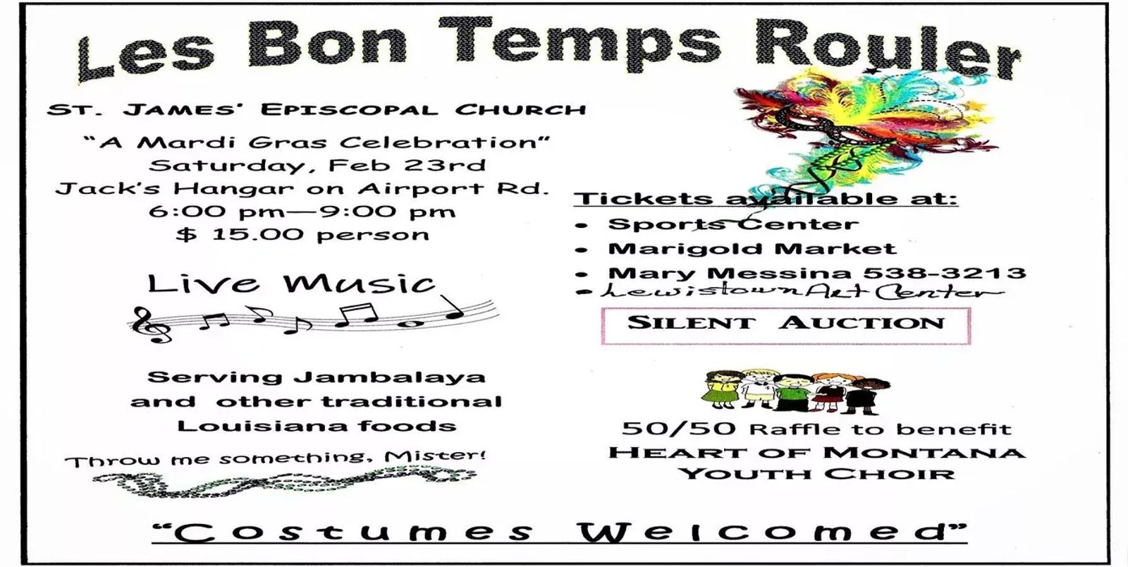 An evening of fun, food and entertainment. Come and join in the celebration of Mardi Gras as celebrated in New Orleans. Dress in fun fair, costumes encouraged but not necessary. Taste the food of the Cajun South (spicy and not). Adult refreshments available for purchase. Enjoy the jazz celebrated at this time. Local musicians to perform. Tickets available at $15.00: see the flyer for details.
