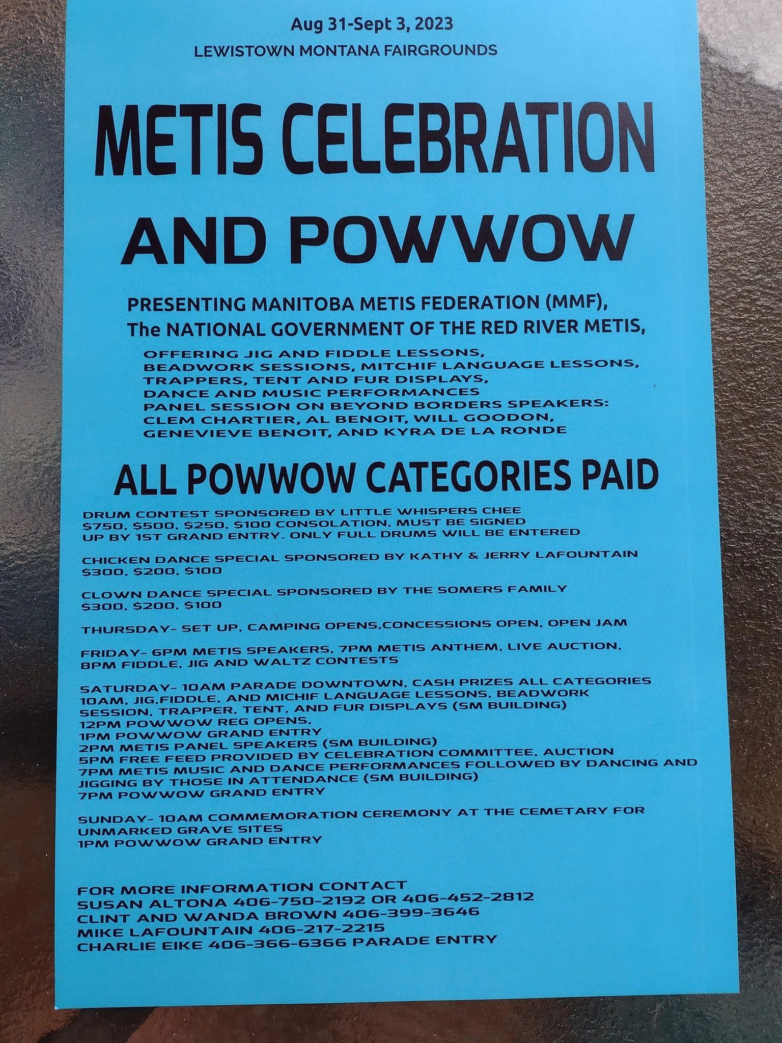 Join this year's annual Metis Celebration and Powwow at the Fergus County Fairgrounds. Live music - all musicians welcome. Catch the traditional Metis jig contest, the Waltz contest, and the fiddle contest. Free tent camping available.