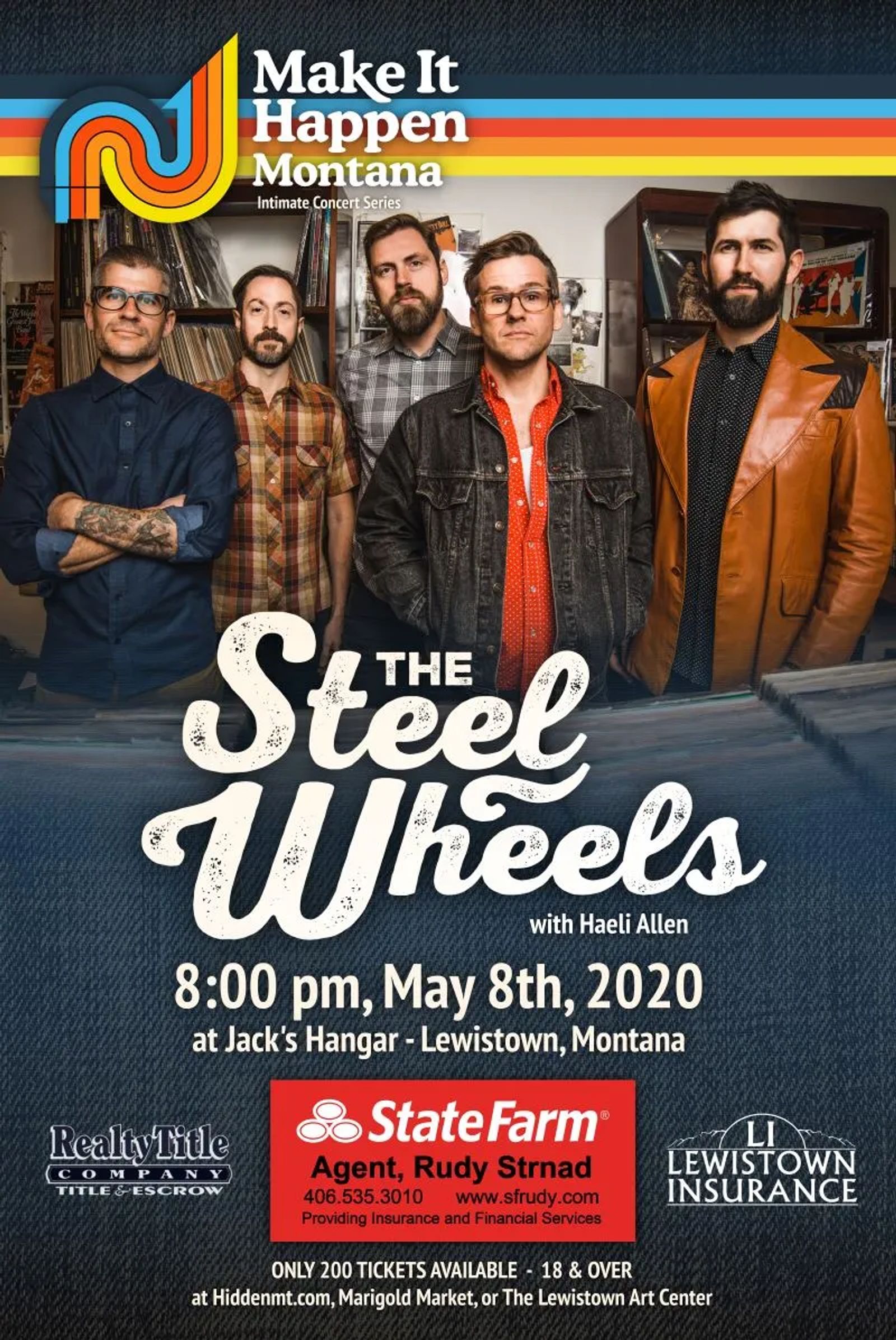 Make It Happen's Intimate Concert Series for 2020 closes out the season with the "simultaneously familiar and fresh" The Steel Wheels on May 8th; with opening artist Haeli Allen Music! Only 200 tickets will be sold for this incredible and personal concert that will be held at Jack's Hangar on airport road in Lewistown, MT. From their base in Virginia’s Blue Ridge Mountains, The Steel Wheels have played the most prestigious festivals, listening rooms, and clubs in the world, cementing a reputation as one of the top independent bands on the scene today.