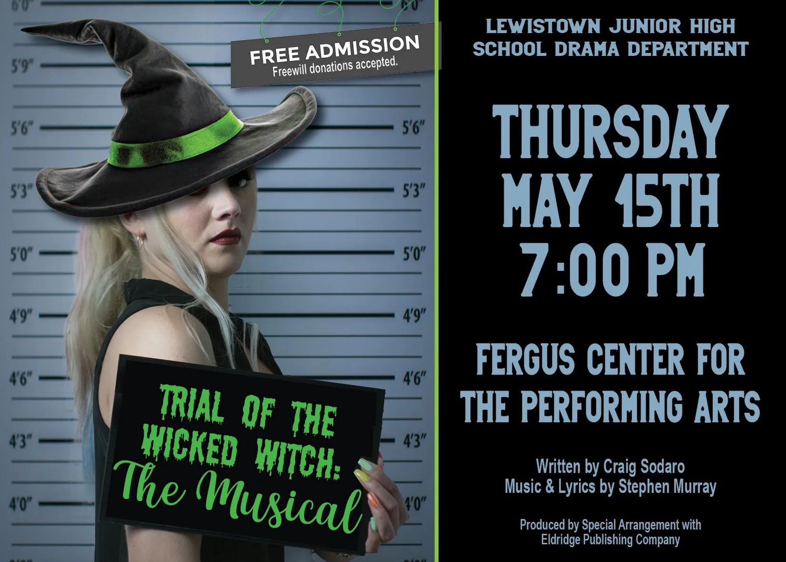 The Lewistown Junior High Drama and Choir programs are proud to present our spring musical, "Trial of the Wicked Witch."