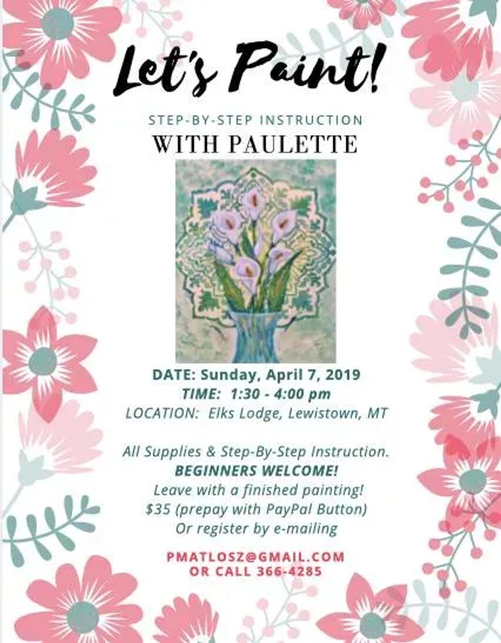 Step-by-step instruction to create your own 11 x 14 acrylic painting! All supplies included. Beginners welcome! Create a fun and easy background with a choice of foreground subject. Join fr a fun, relaxing, stress-free creative adventure!