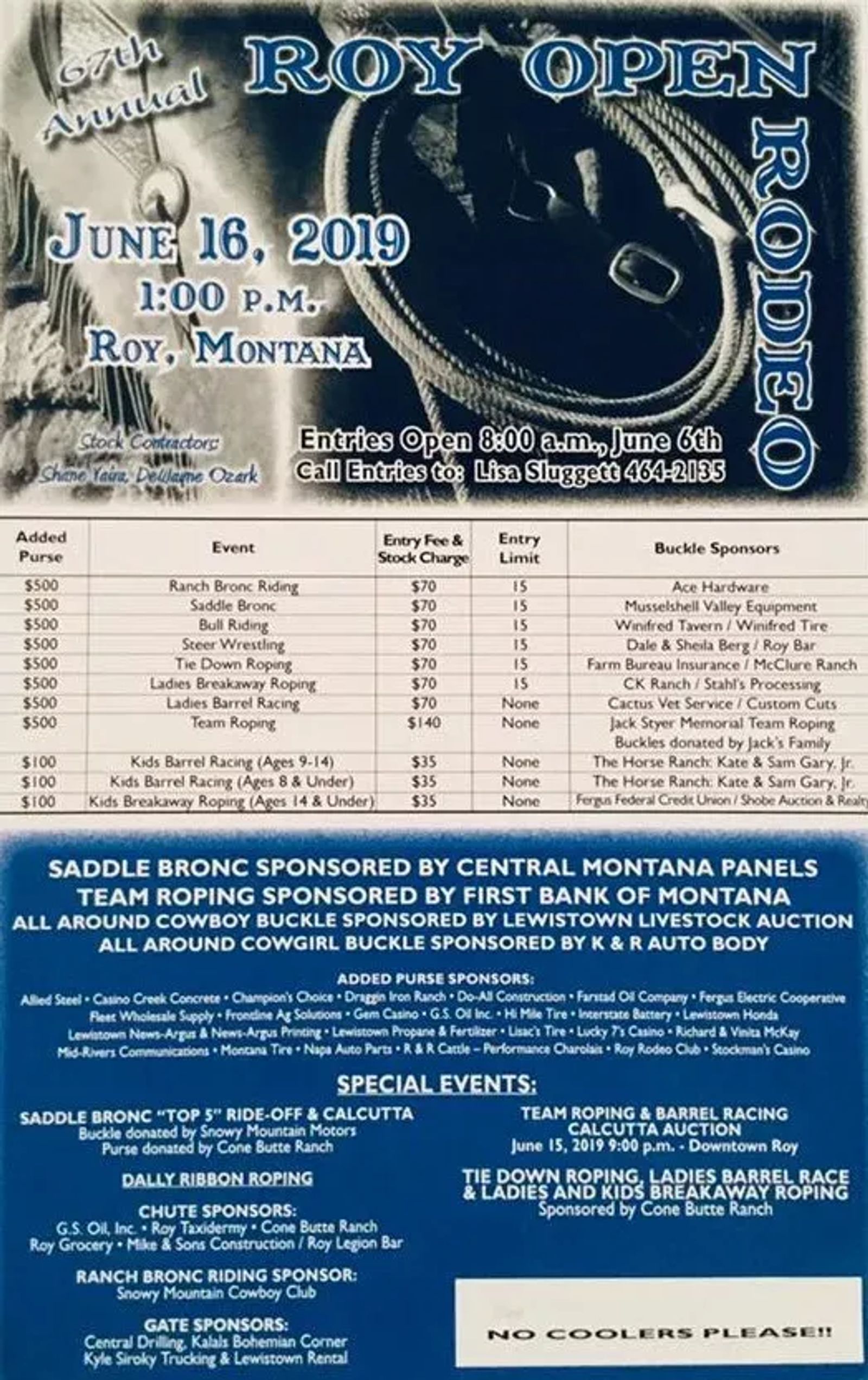 The Roy Rodeo is an annual open rodeo that takes place on Father's Day in Roy, Montana. Roy is located approx. 37 Miles NE of Lewistown.