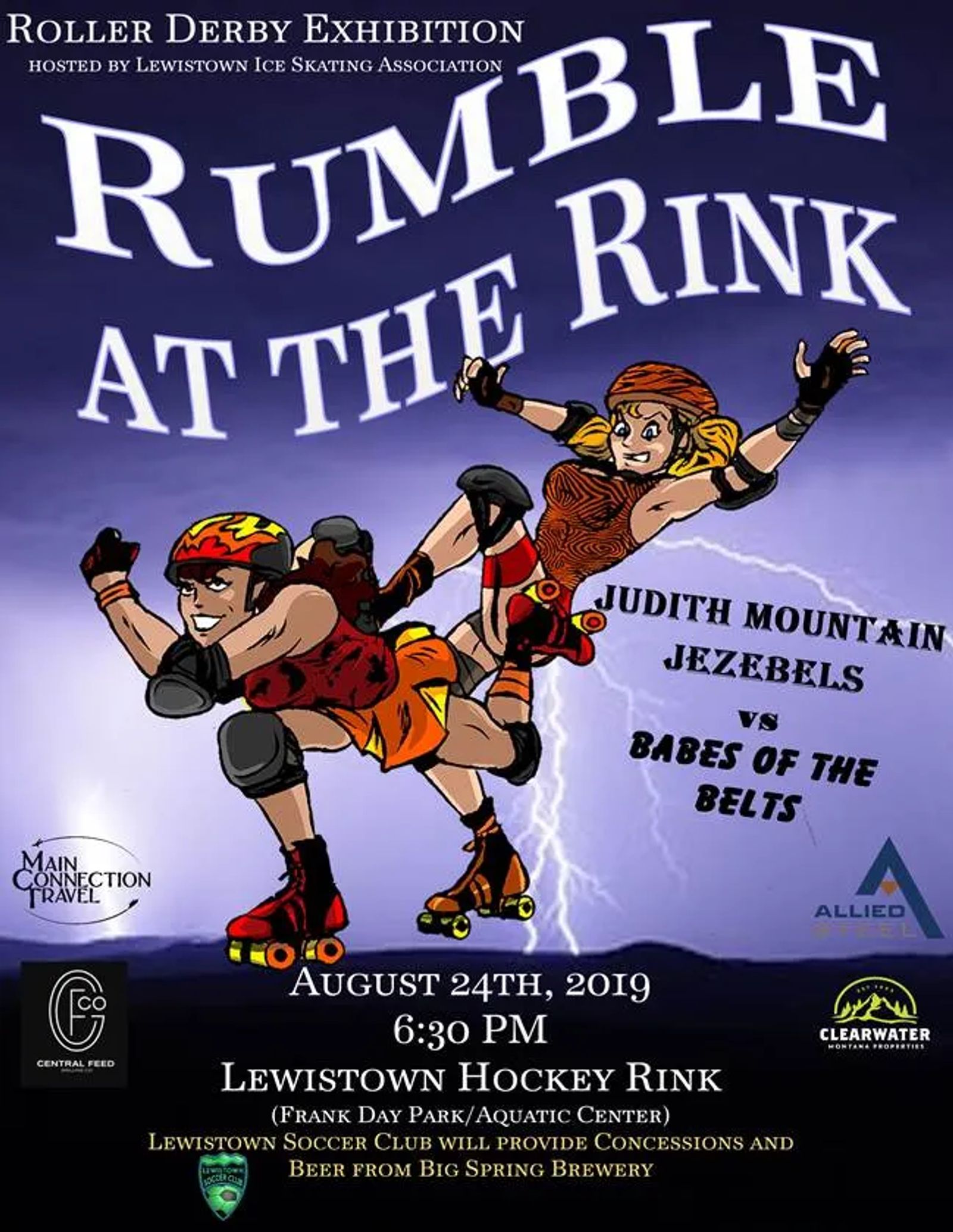 Come out to the park to enjoy this possibly first-ever of it's kind flat track roller derby bout as the Judith Mountain Jezebels take on the Babes of the Belts at the Lewistown Ice Rink. Hosted by Lewistown Ice Skating Association with concessions served by Lewistown Soccer Club.
