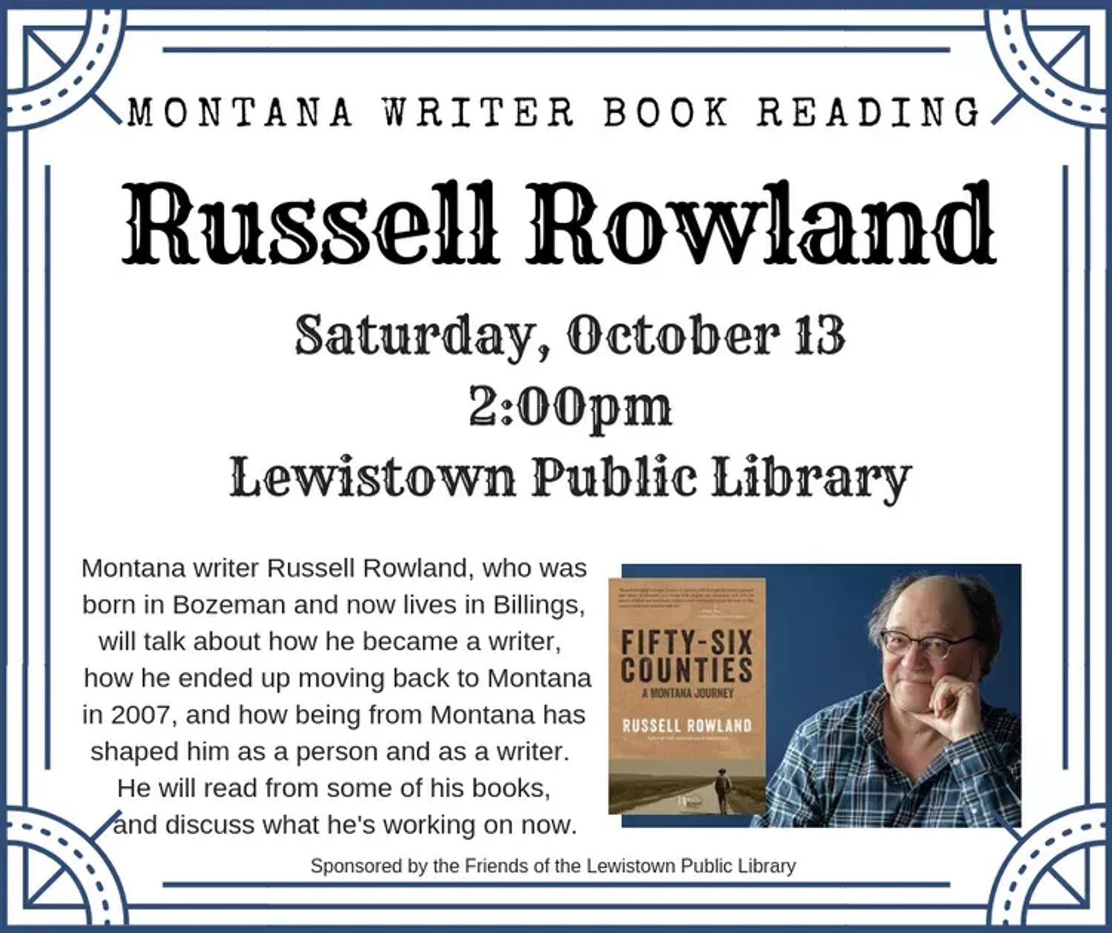 Montana writer Russel Rowland will host a book reading for “Fifty-Six Counties” on Saturday, October 13 at 2pm at the Lewistown Public Library.