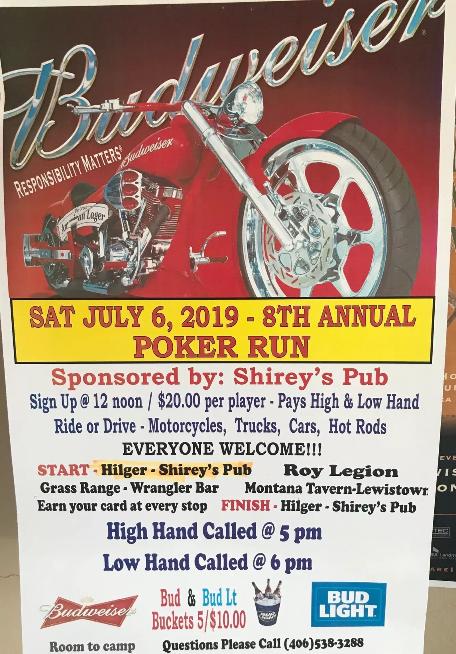 Earn your card at every stop. High hand called @ 5 pm. Low hand called @ 6 pm.