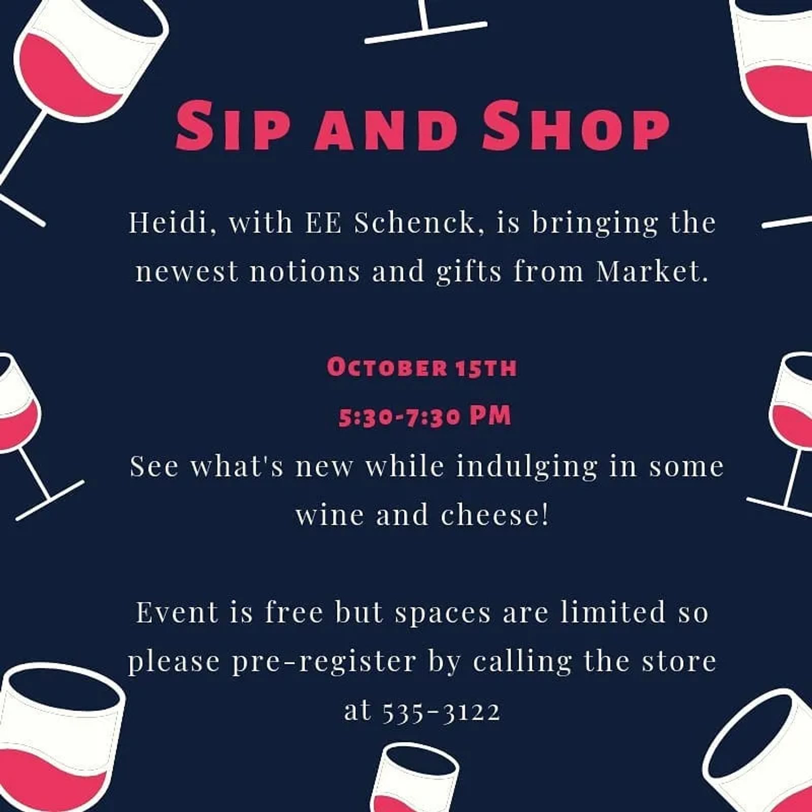 Heidi, with EE Schenck, is bringing the newest notions and gifts from Market. See what's new while indulging in some wine and cheese! Event is free but spaces are limited, so please pre-register by calling the store at 535-3122.