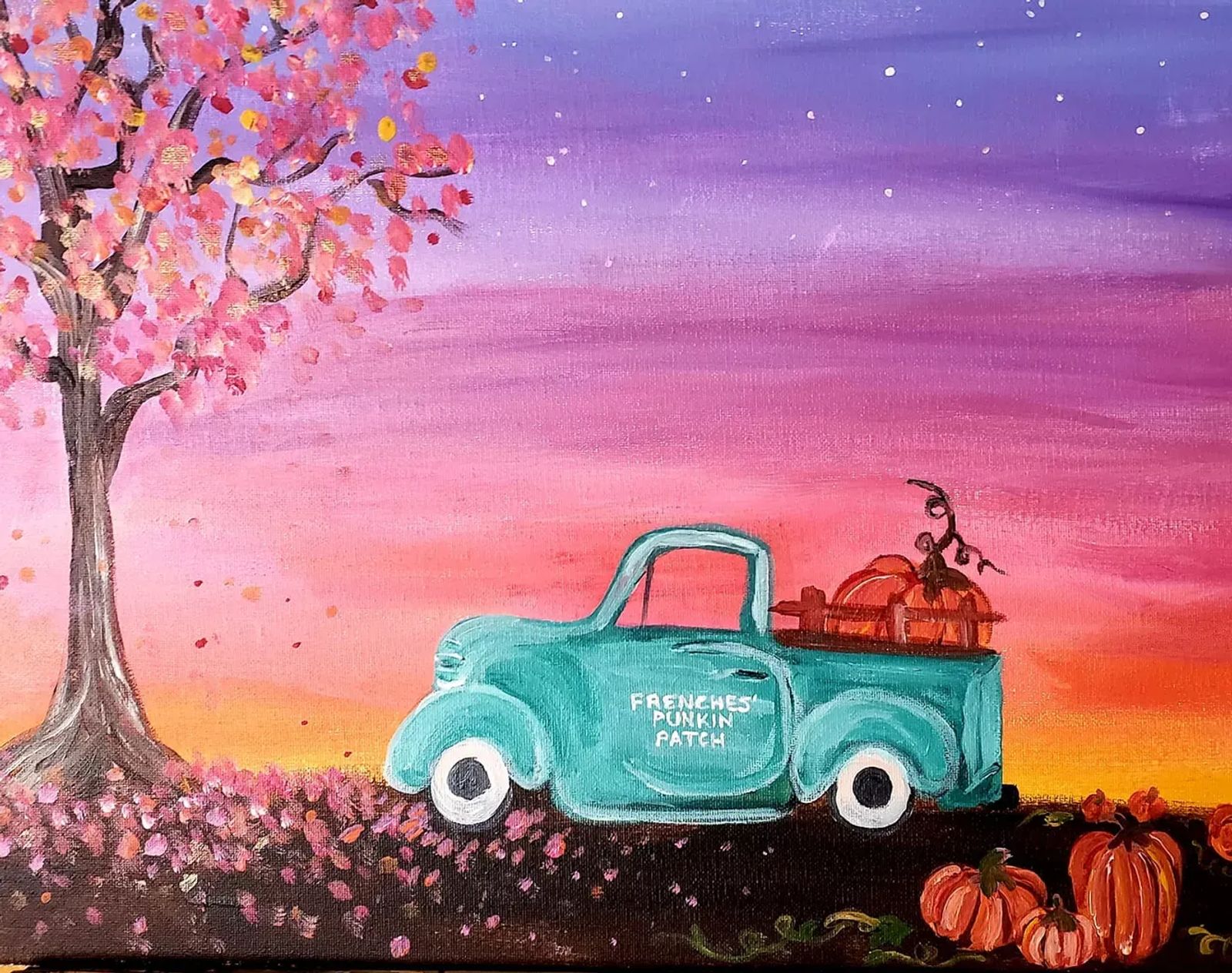 Come out and get creative with this cute fall painting. Personalize your little ol' vintage pickup with your family name, and paint some pumpkins into your patch! Liz and crew will be providing some snacks, as well as a free beverage with your ticket for $40. Participants of all levels from beginner to advanced are welcome! Spots are limited, so please pay your fee in advance to reserve your spot! Hope you can join us!
