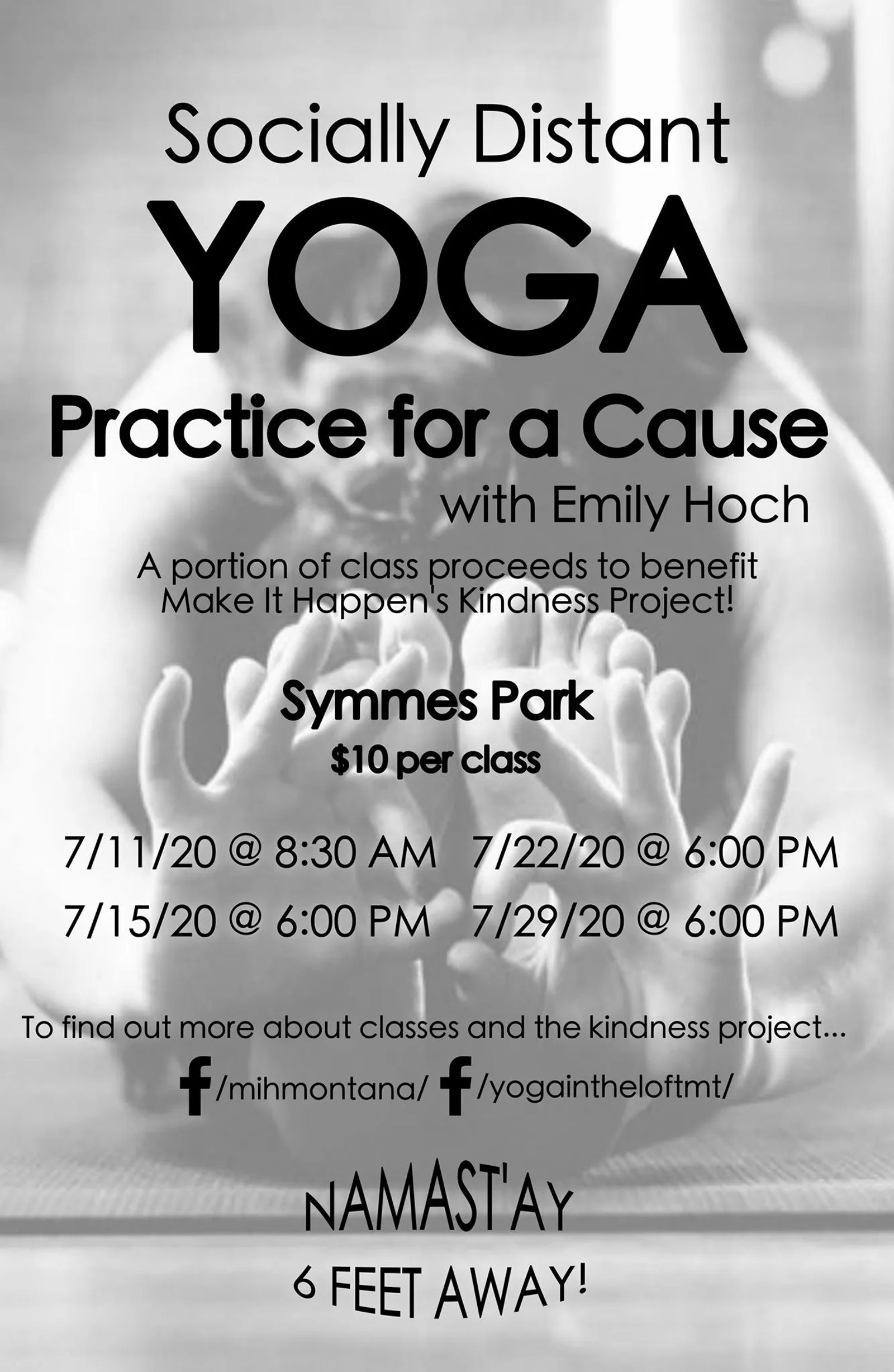 Join Yoga Instructor Emily Hoch for Socially Distant Yoga Practice for a Cause! Classes will be held in Symmes Park between the tennis court and Big Spring Skatepark.