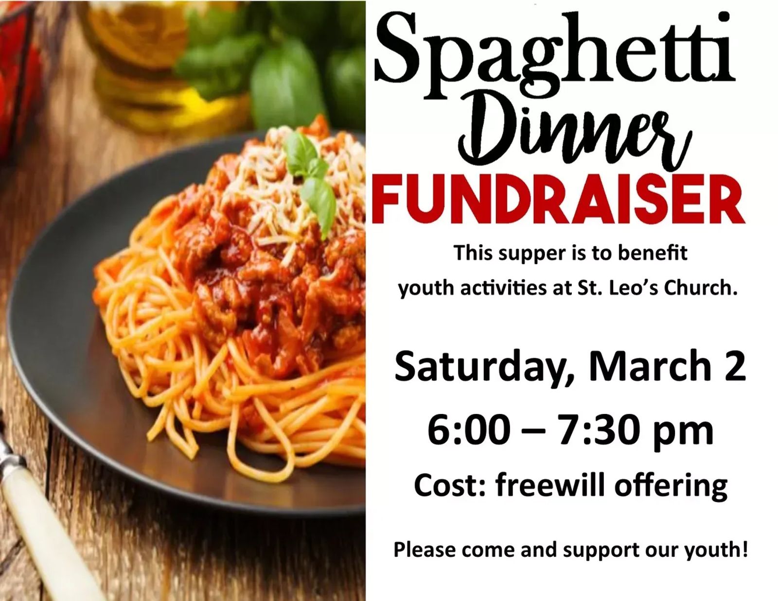 This supper is to benefit youth activities at St. Leo’s Church. This will be a free will offering fundraiser.