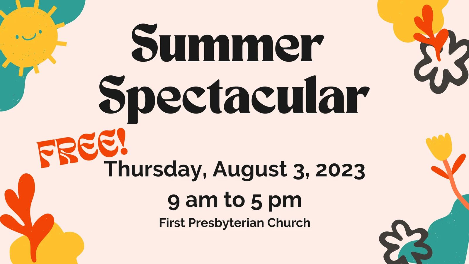 Thursday, August 3 from 9am-5pm at FPC! Drop-off begins at 8:30am.
