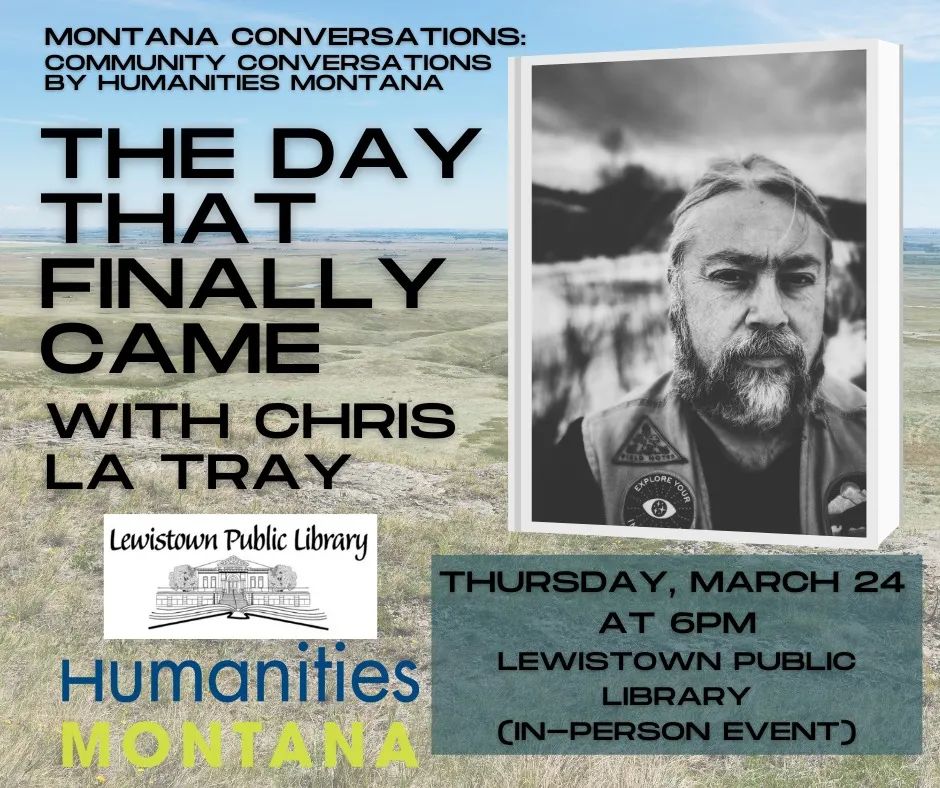 The Lewistown Public Library will host Montana poet, Métis storyteller, and Little Shell tribal member Chris La Tray for an in-person event on Thursday, March 24 at 6PM in the upstairs Meeting Room.