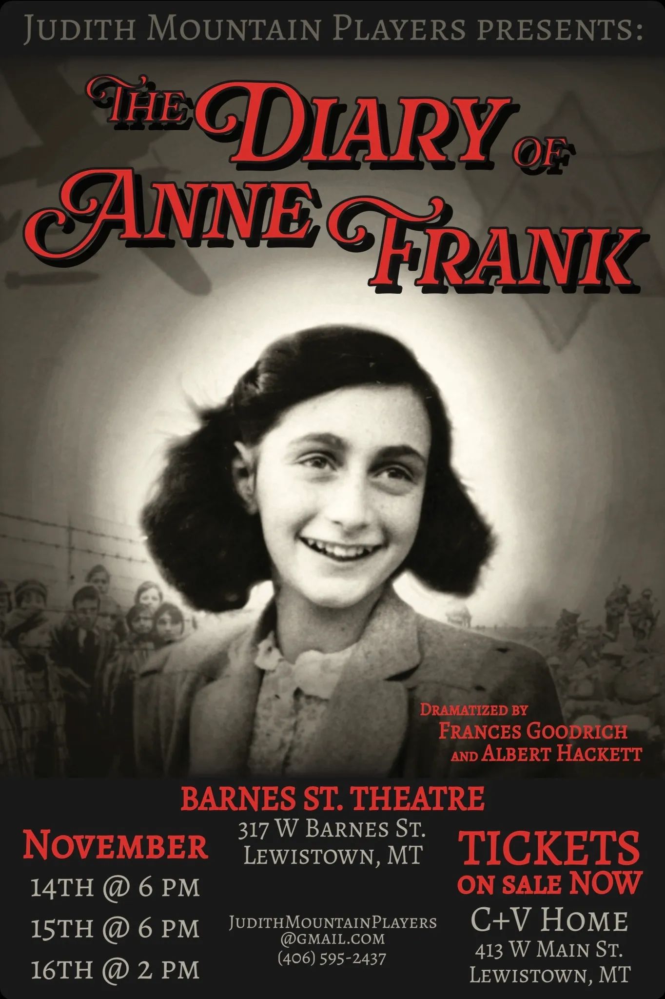 Step inside one of history’s most powerful stories as the Judith Mountain Players bring The Diary of Anne Frank to the stage. This moving dramatization by Frances Goodrich and Albert Hackett captures the courage, hope, and humanity of a young girl whose voice continues to inspire generations.