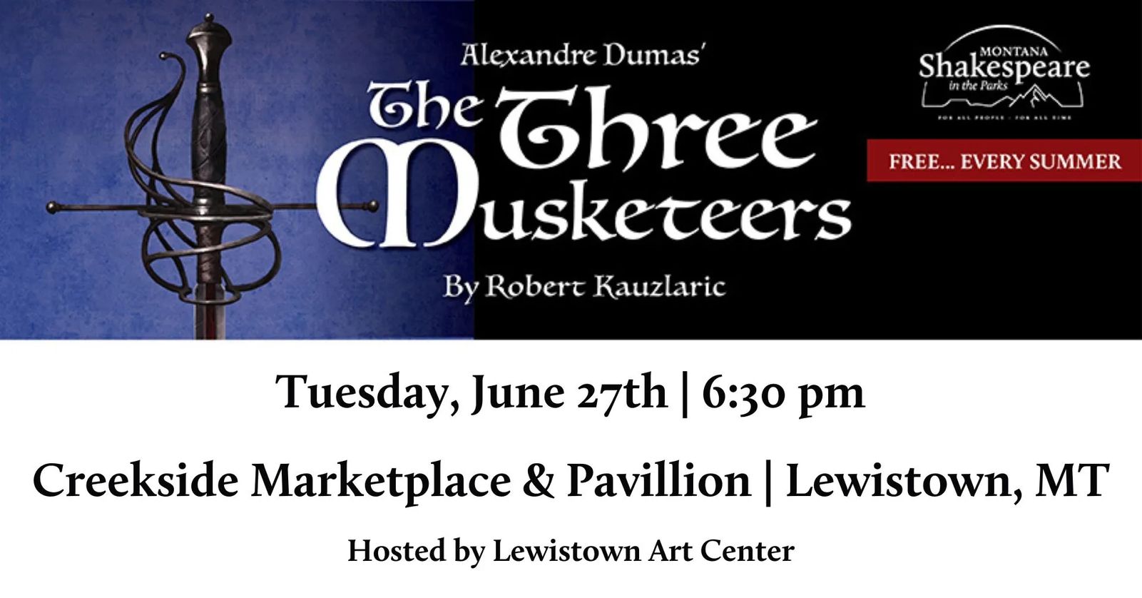 Join Montana Shakespeare in the Parks for a free performance of The Three Musketeers on June 27th in Lewistown, MT.