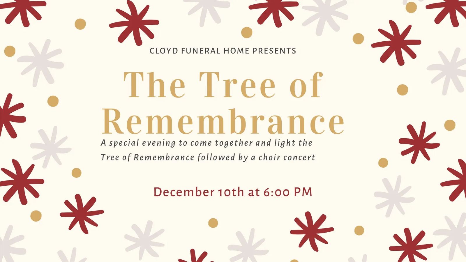 A special evening to come together and light the Tree of Remembrance followed by live music, comforting foods and hot beverages.