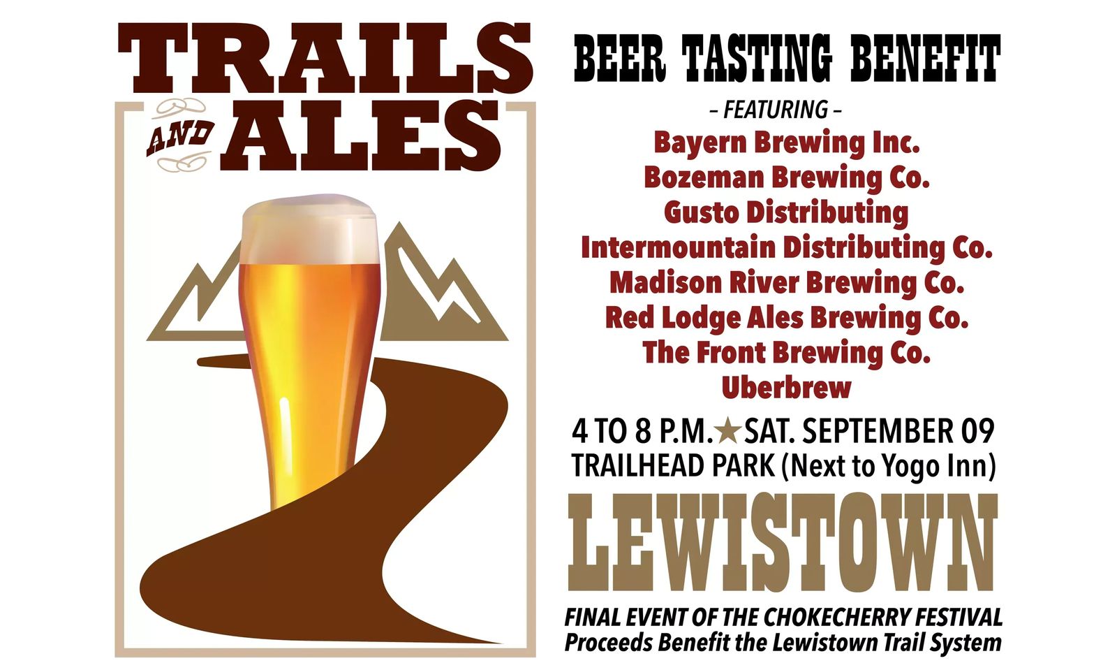 The 2018 Trails & Ales Beer Tasting Festival is the first at its new location, Creekside Park. Eleven brewers from across Montana will share their craft for the benefit of Lewistown's 24-miles civic trail system. The festival is the first formal event at Creekside Park which will open next year. Live music by Tom Catmull's Last Resort is free to the public, no tickets required, courtesy of the Lewistown Arts & Entertainment District Association and the Creekside Committee. Tickets are only required to sample beer ($20 per person), and participants in the beer tasting must be over age 21. No seating is available, it is recommended that you bring a chair to attend the concert and beer tasting! More information online at LewistownTrails.com.