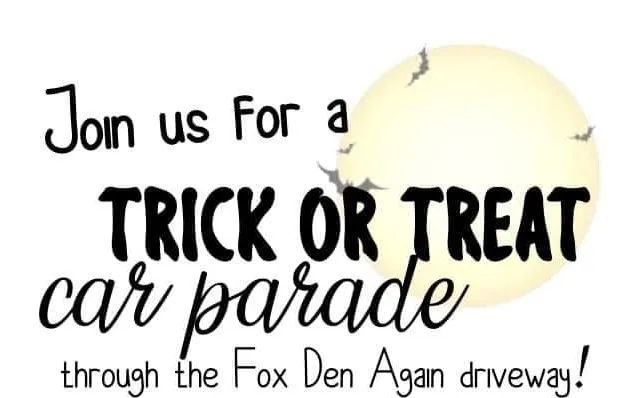 Join us for a Trick or Treat car parade through the Fox Den Again driveway! Please enter from 1st Avenue South and exit onto Brassey Street!