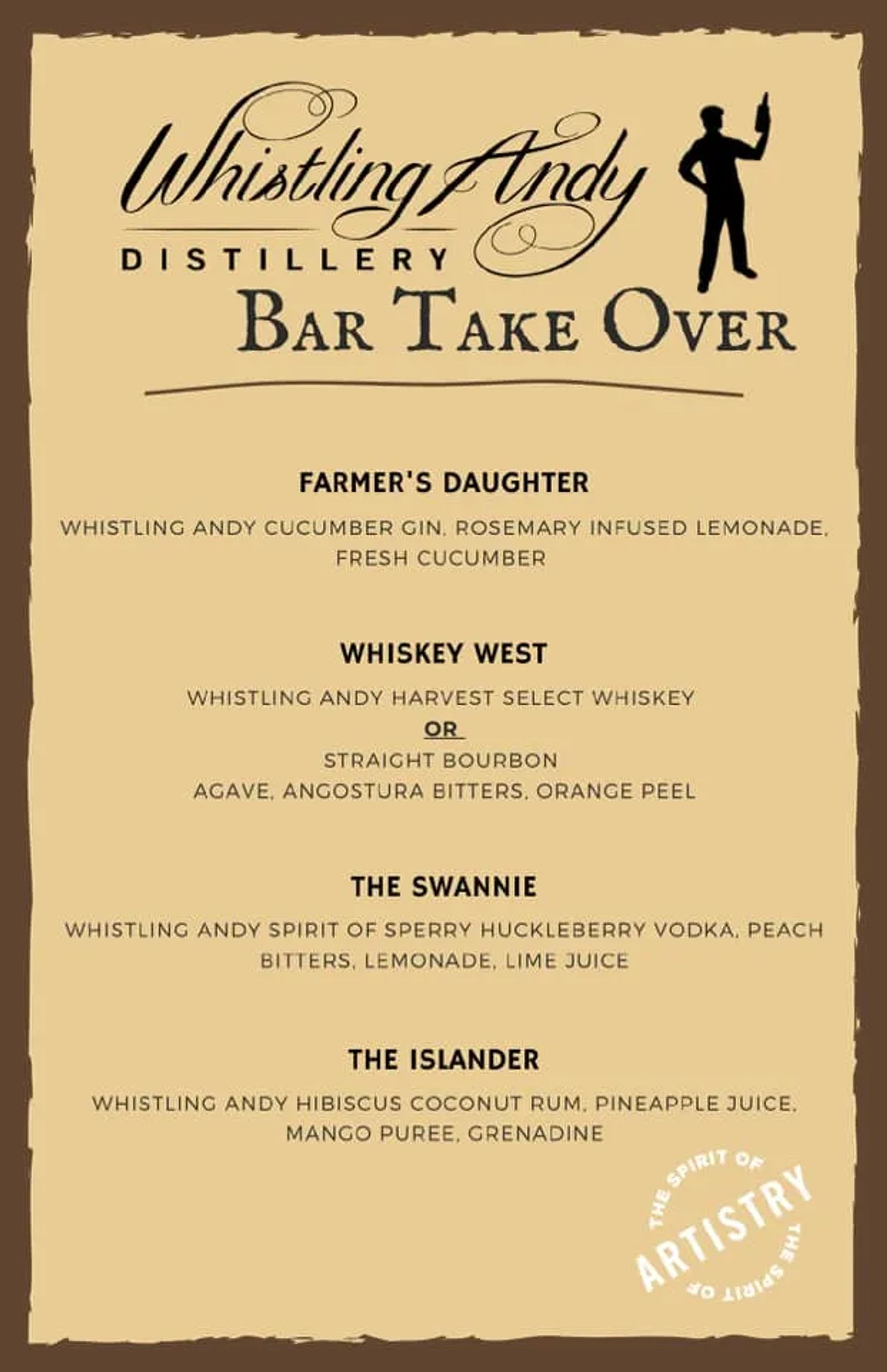 Whistling Andy Distillery Bar Takeover