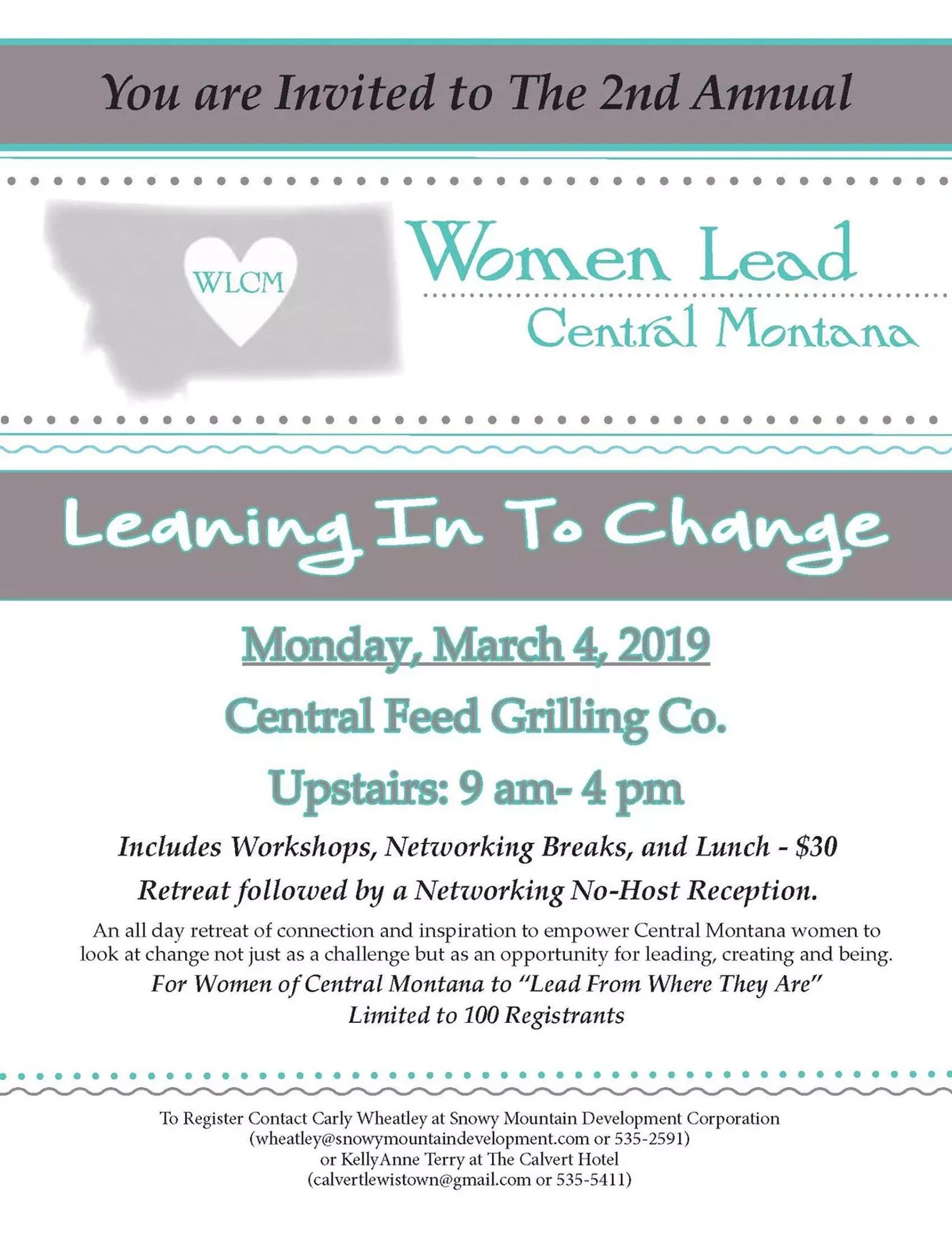You are invited to the 2nd annual Women Lead Central Montana. This year we will be focusing on change. Not just on the challenges that may come with change, but the opportunities changes may provide.