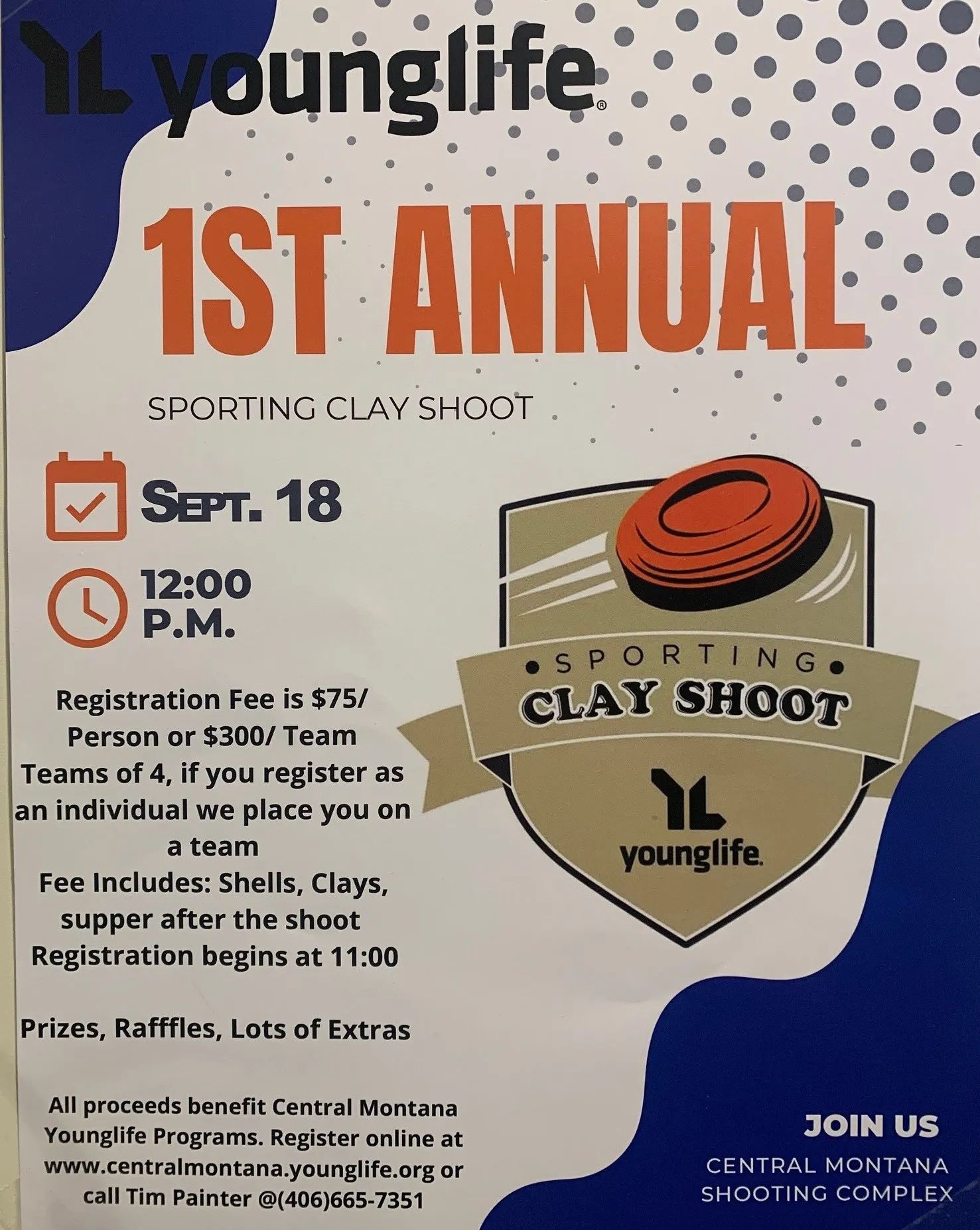All proceeds benefit Central Montana Younglife Programs. Register online at www.centralmontana.younglife.org or call Time Painter @ 406-665-7651.